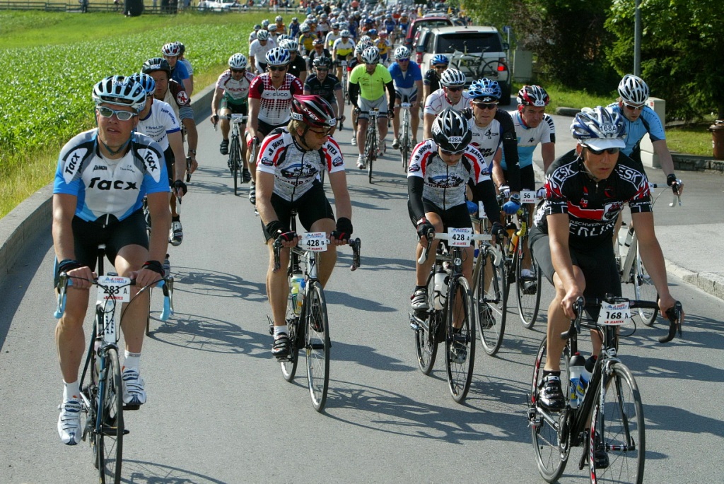Nach dem Frühstück machten wir uns fahrbereit und gaben unsere Taschen beim Transportservice ab. Nun rollten wir uns ein wenig ein, um uns danach in den Startblock zu begeben. Der Start sollte um 10.00 Uhr erfolgen. Die ersten Kilometer, bis zum ersten Anstieg des Tages zum Oberjoch, sind neutralisiert gewesen, es wurde langsam dahingerollt.
