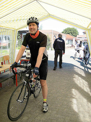 Es ist Samstagmorgen 6 Uhr, ich wache auf und muss mich der Wirklichkeit stellen. Die sieht gar nicht so schlecht aus, herrlichstes Sonnenwetter, gewohnt herzlicher Empfang in Nortorf, eine mir bekannte Strecke von 28 km, das Dreieck Nortorf-Aukrug-Oldenhütten-Nortorf, viermal rechts abbiegen, sonst nur geradeaus, bis schließlich auf der langen Geraden von Bargstedt nach Osten die Kirchspitze von Sankt Martin auftaucht und das Rundenziel greifbar scheint. Als Gesamtziel hatte ich die 500er Marke im Visier, wenn es gelingt, eine geeignete Gruppe zu finden, darf es gern auch ein bisschen mehr sein, 532 oder 560, nur welche Faszination geht von solchen Zahlen schon aus, warum sich dafür abstrampeln, wenn die 600er Marke utopisch bleibt? Mein besonderer Dank gilt Peter Polizei – schon in dieser Disziplin erfahren, der auch Initiator für diese Veranstaltung gewesen ist und sich in den ersten fünf Runden eifrig um mich und eine harmonische Gruppe bemüht, mich aber schließlich freigegeben hat. Auf den flachen Teilstrecken mochte ich einer vorwärtsdrängenden Gruppe noch nützlich sein, den alpinen Teil im Naturpark Aukrug wollte ich mit allen Sinnen für die Schönheiten der Natur zelebrieren, was eine bedächtigere Fahrweise und auch schon mal einen kontemplativen Halt bedeutete (in Kollegensprache ist da ein Mehlsack auf der Straße liegengeblieben). So strampelte ich denn mit der Unbefangenheit eines Waldbauernbubs allein vor mich hin, hangelte mich von Runde zu Runde. war hin- und hergerissen im Überschwang der Gefühle, geriet ins Philosophieren – „ich radle, also bin ich“, war mein Mantra oder „einem Randonneur ist nichts zu schwör“, wenn diverse Zipperlein auftraten, die sich nicht ändern ließen, wie zum Beispiel höllisch brennende Fußsohlen oder Nackenstiche, als hätte ich ein Hornissennest als Kopfkissen gehabt. Einen Pausenplan hatte ich nicht, auf Schlaf kann man mit 62 schon mal verzichten, eigentlich war ich ohne Strategie, wollte mich mit wenig Krafteinsatz einfach so treiben lassen, diese Tour genießen. Ich hatte zwar nicht systematisch trainiert, aber genügend km in den Beinen, besonders der nur mit Apfelschorle überstandene 400er Anfang Juni gab mir Zuversicht, zweimal Marathon hintereinander nur eine Woche vor dem Termin, davon die Mittsommertour bei Nacht und Regen, war allerdings grenzwertig, ist aber nochmal gutgegangen. Zwischen Qual und Freude gibt es ein breites Feld der Selbsterfahrung, damit richtig umzugehen ist eine Kunst, um schließlich glücklich das Ziel zu erreichen.